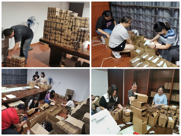 美菜、樸樸、盒馬、拼多多等各大電商平臺訂單陡增,電商貿(mào)易事業(yè)部工作人員在職能部門同事的支援下忙著分揀打包。