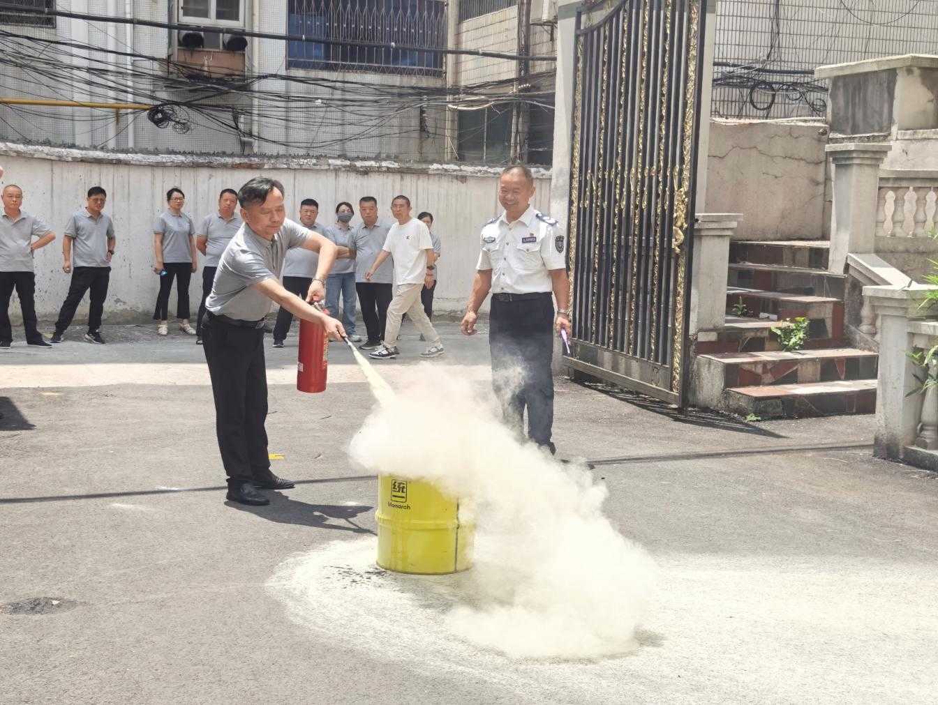 理論知識(shí)培訓(xùn)結(jié)束后,全體參訓(xùn)人員在教員的指導(dǎo)下,開(kāi)展滅火器實(shí)操演練。